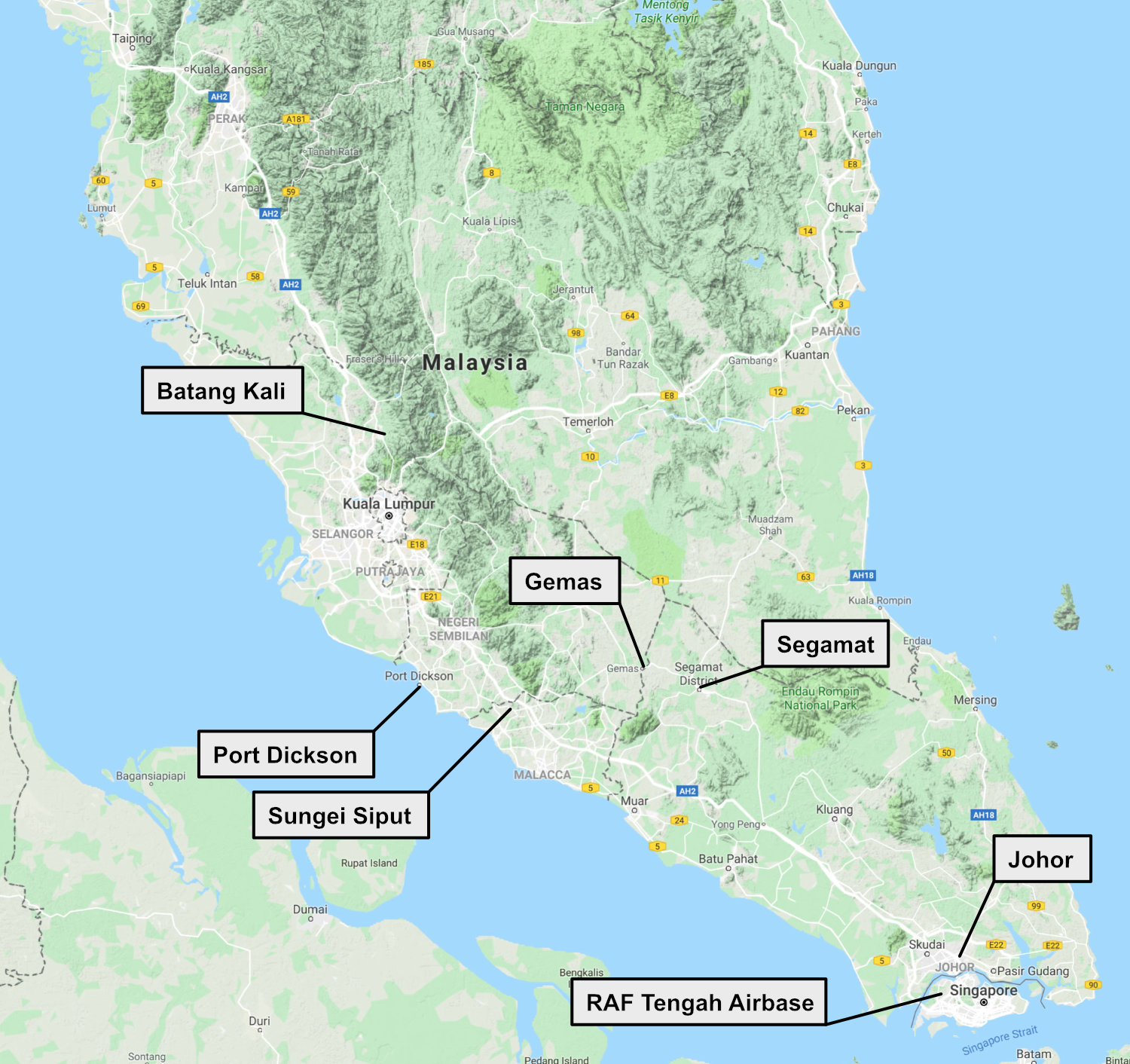" Port Dickson is an actual place in Malaya where I served for several years and is located on the shores of the Malacca Straights where many happy hours were spent swimming. Just up the road are Segamet and Gemas where our operations in Johor Bahru began. Further on down the road before you cross the causeway into Singapore was RAF Tengah Air Base where the Lancaster and Canberra Bombers used on Air Strikes were based. Using a ground to air R209 radio I used to make contact with them and give weather conditions over the target. "